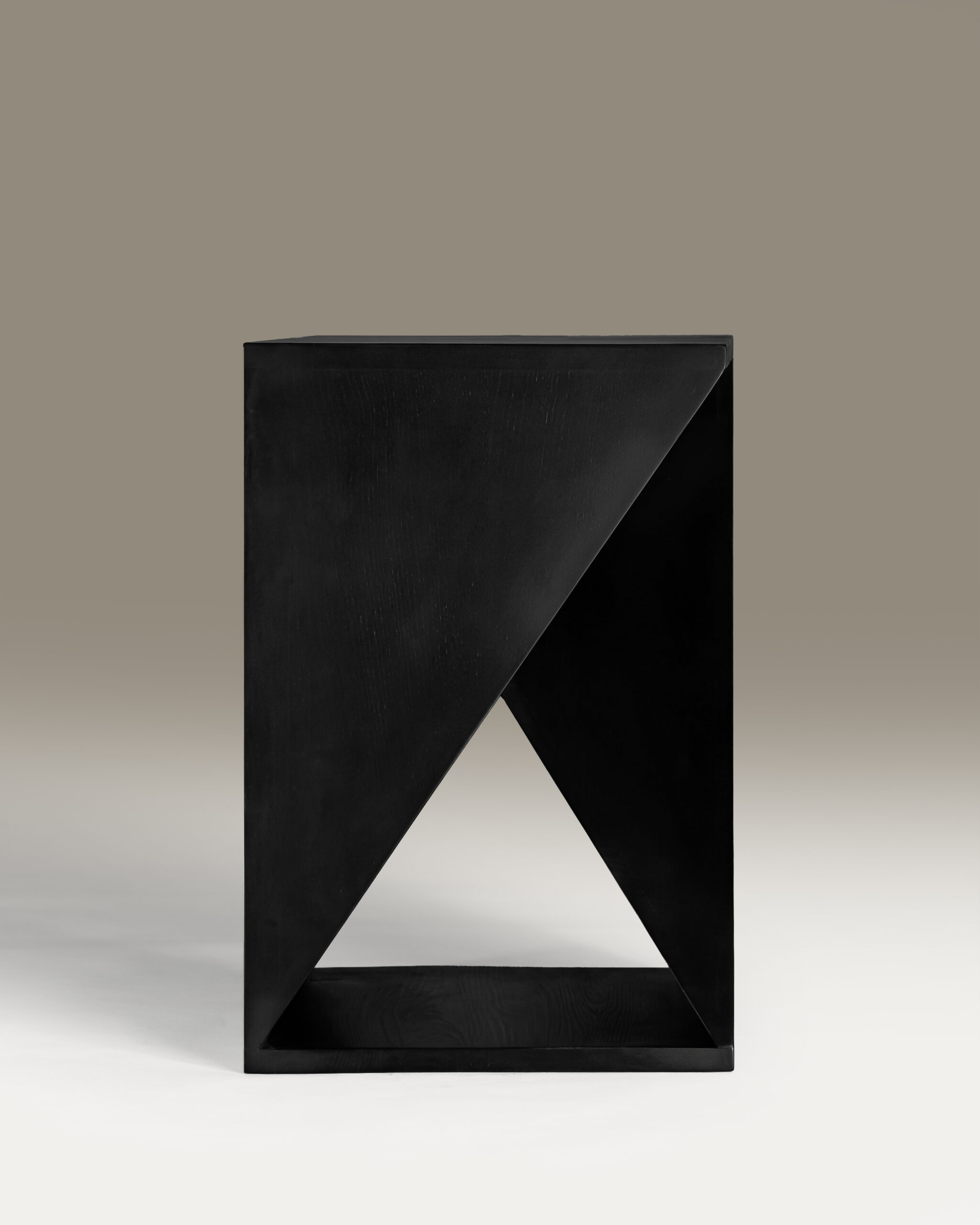 Crafted with architectural precision, each surface flows into the next, forming a composition that changes character with every perspective. The play of light and shadow across its edges accentuates its dynamic form, while the clean, minimal lines preserve a sense of calm restraint. It stands as both furniture and art — a functional object that doubles as a piece of spatial poetry.