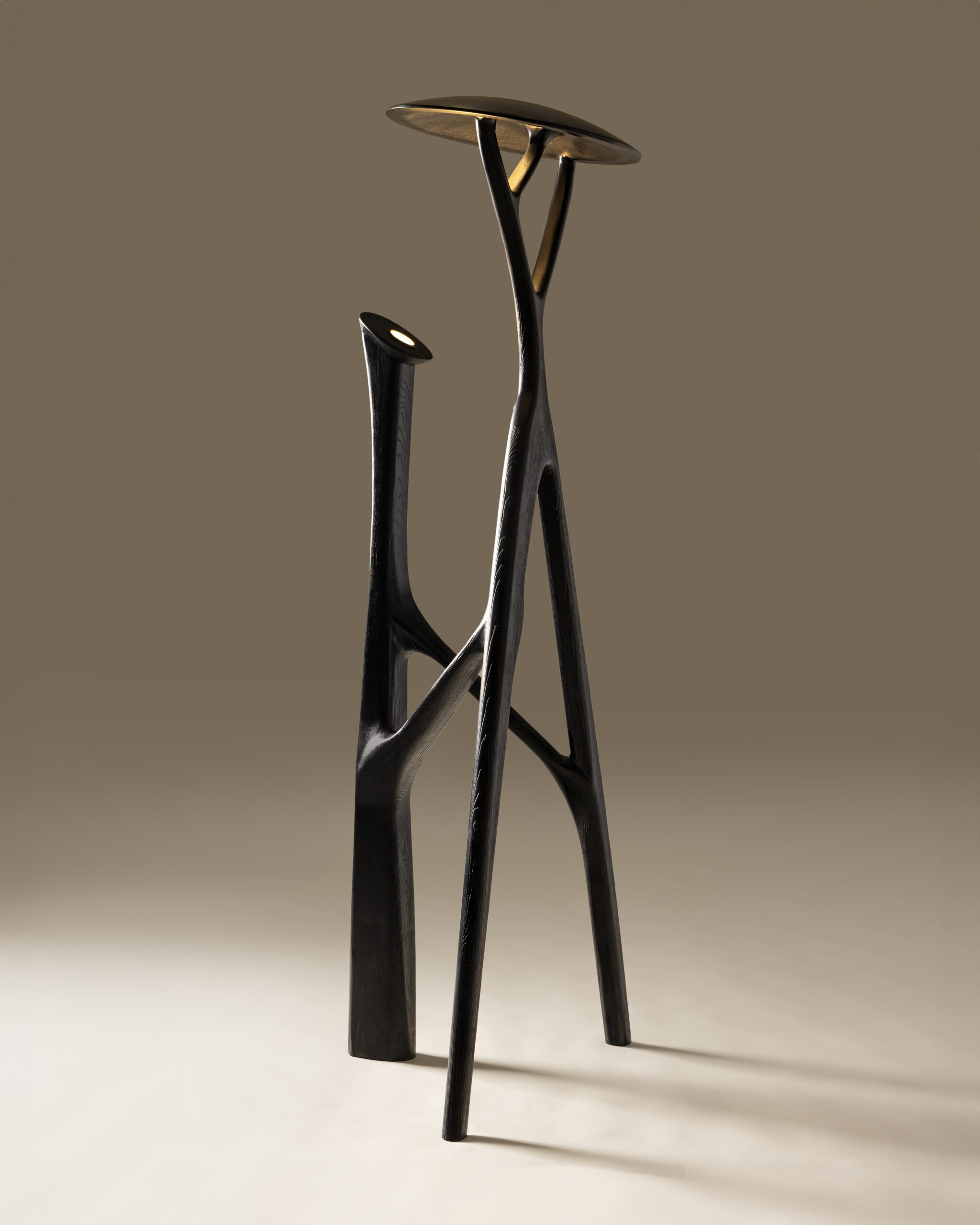 The Draven Lamp rises like a sentinel — a towering 7-foot sculptural creation that embodies the mystique of oblivion and the quiet strength of form. Crafted entirely from solid wood, it bridges the line between light and architecture, between utility and poetry. Every inch of its structure reflects Home of Chirmi’s devotion to precision and artistry, where raw material becomes narrative.