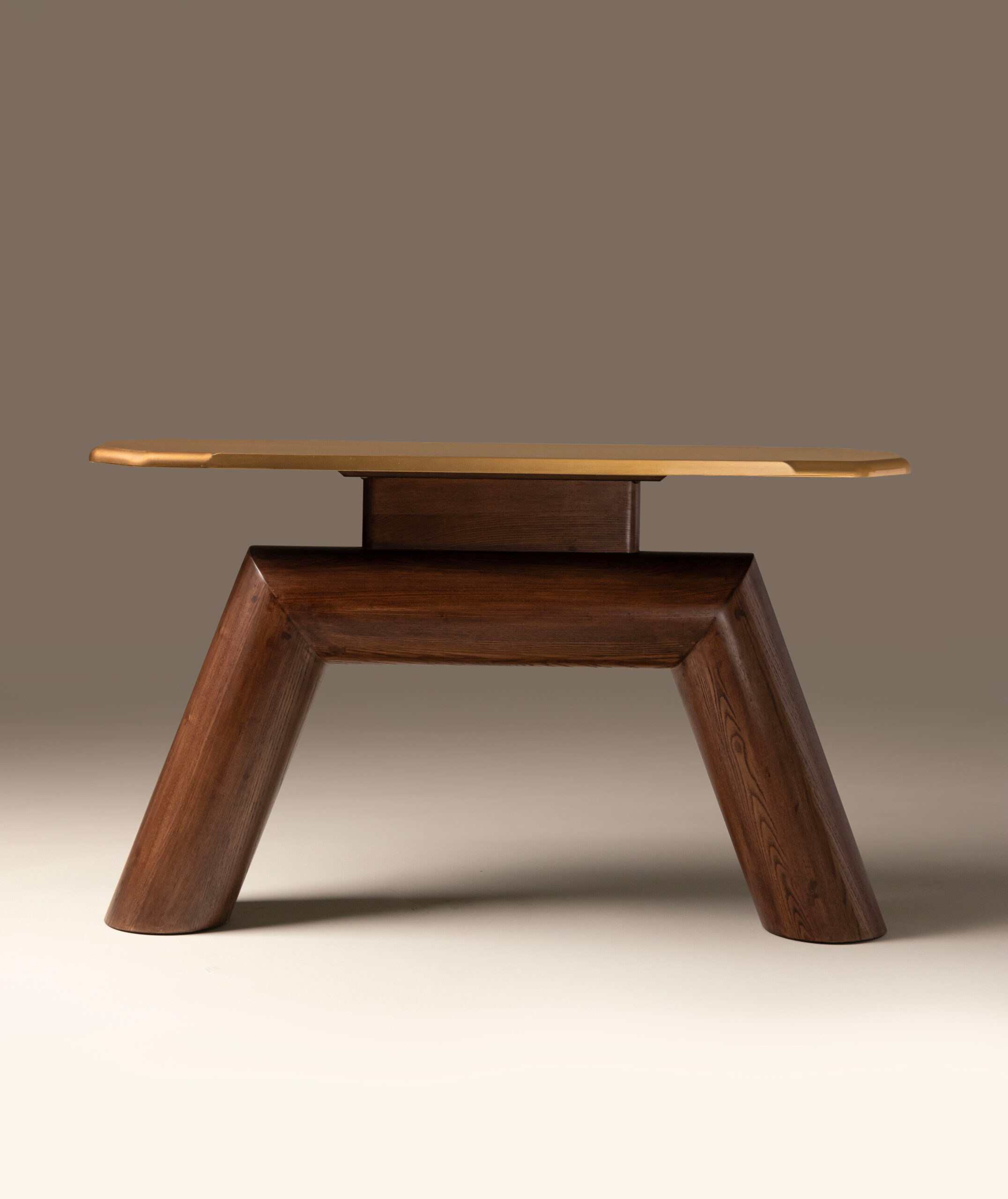 Every detail of the Equus Console is deliberate — from the seamless joinery that embodies structural confidence to the satin-finished brass that catches light like the sheen of a galloping stallion. The console’s geometry, refined through observation and intuition, reveals Home of Chirmi’s devotion to functional sculpture — design that commands attention not through ornament, but through balance and presence.