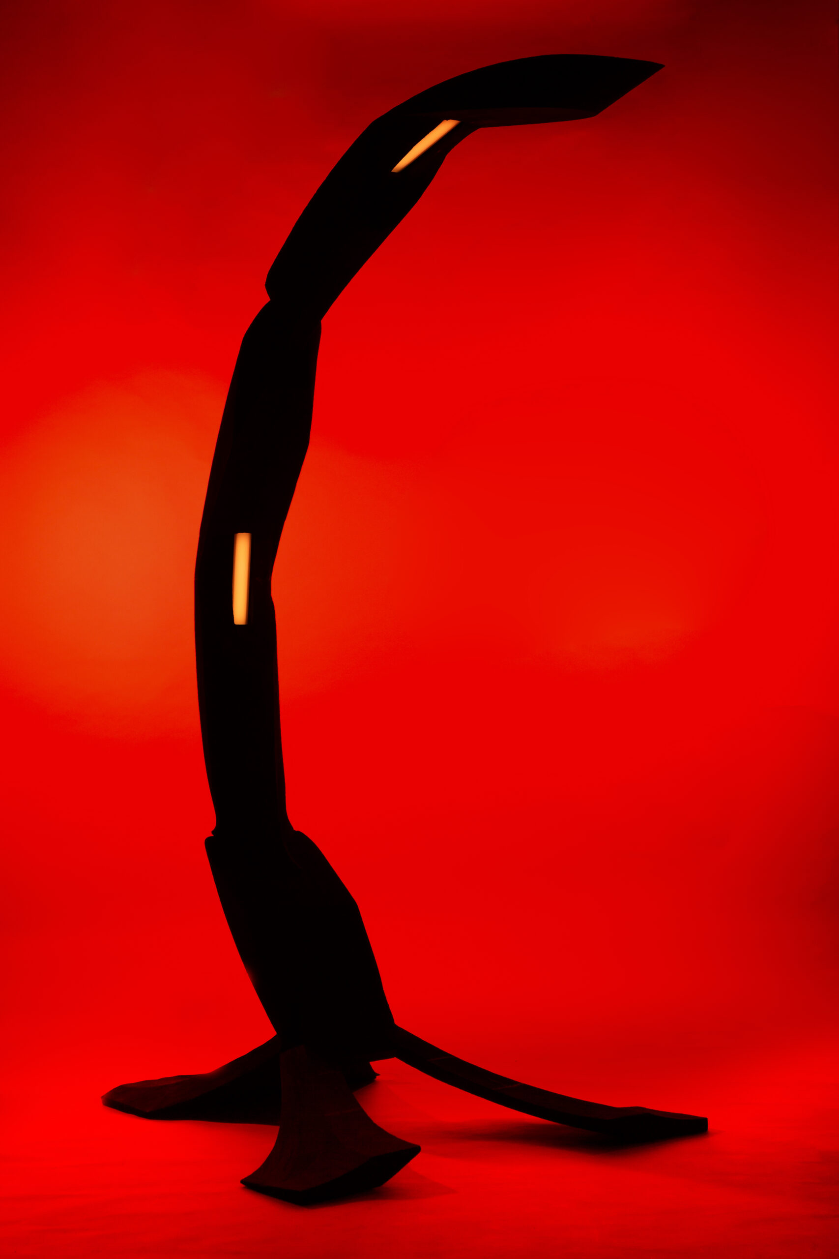 The Metastoma Lamp is a bold exploration of light as form — a sculptural statement that captures the quiet drama of illumination and shadow. Its commanding silhouette bends and flows with deliberate grace, embodying the poetry of controlled motion. Every curve, plane, and reflection has been shaped to create a dialogue between solidity and weightlessness, between structure and emotion.