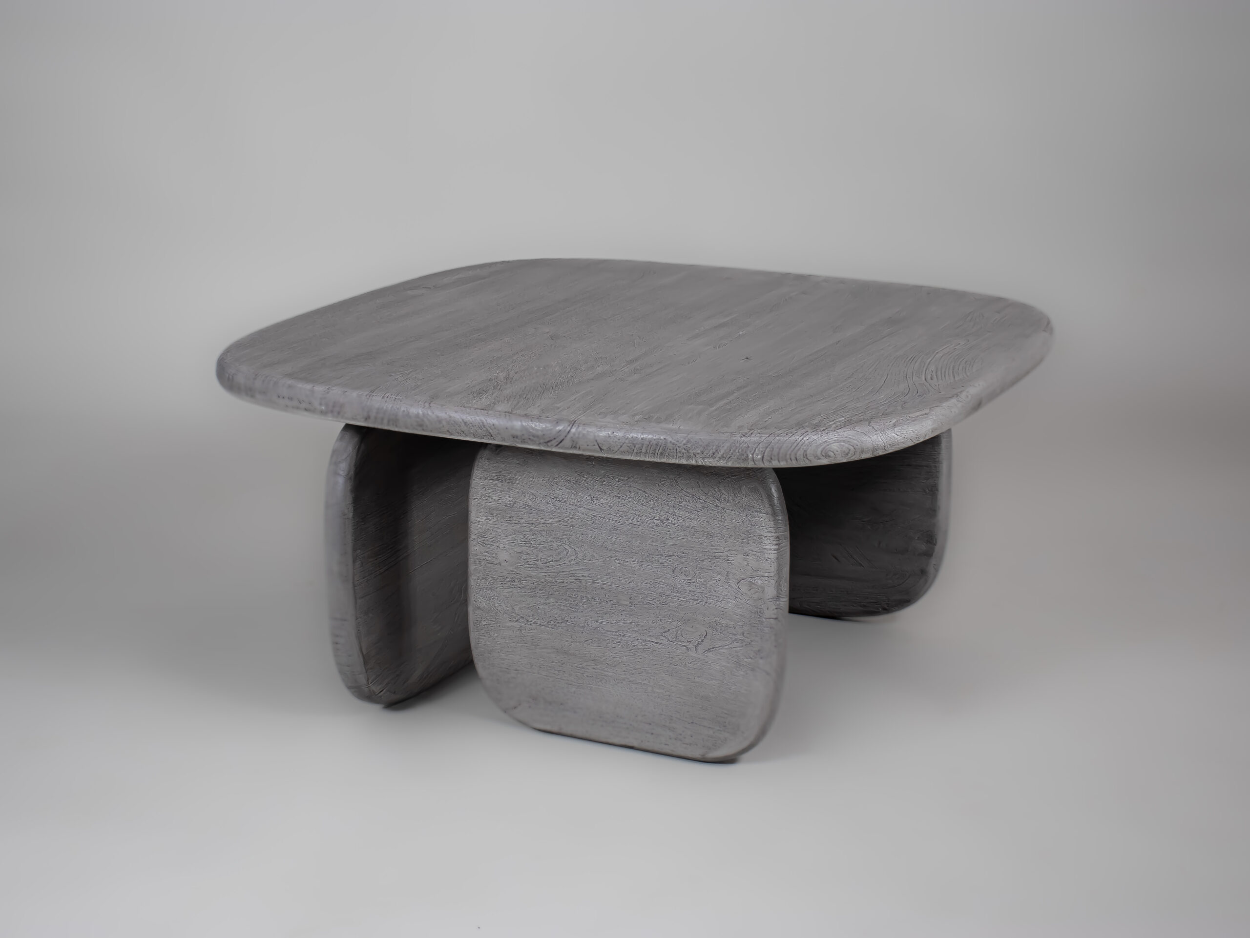 At first glance, the unconventional leg arrangement becomes its defining language — a circular leg, an inverted triangle, and a diagonal square positioned deliberately out of symmetry. Together, they create a composition that appears impossibly balanced, as though the table stands on an idea rather than gravity. This juxtaposition of geometry — round, angular, and oblique — produces a rhythm of contrasts, where logic and artistry coexist in tension.
