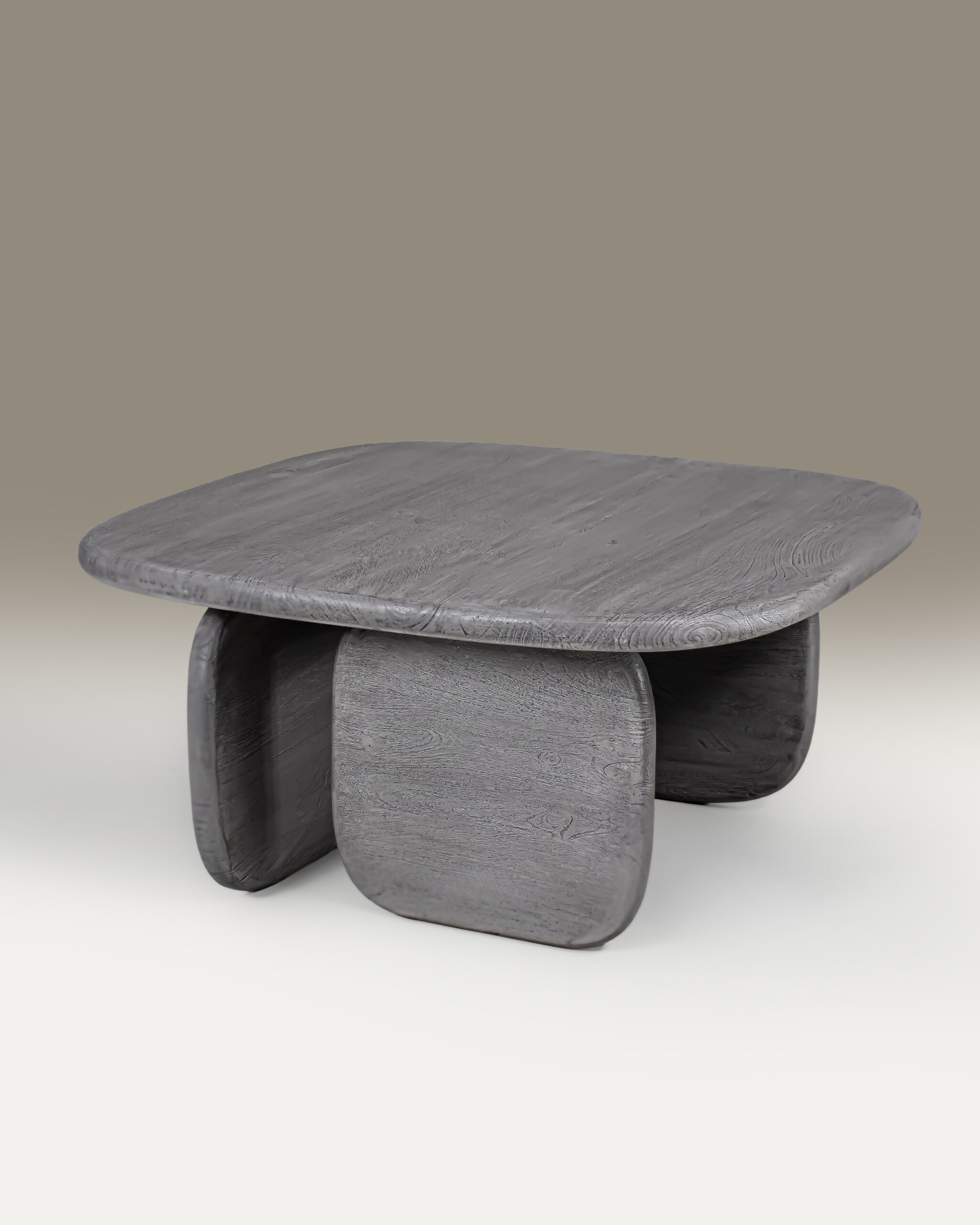 Above this dynamic foundation rests a smooth, monolithic top, its gentle curves echoing the softened edges of pebbles shaped by flowing water. The surface captures light in subtle gradients, emphasizing the seamless craftsmanship that defines Home of Chirmi’s design ethos — precision born from patience, and minimalism imbued with emotion.