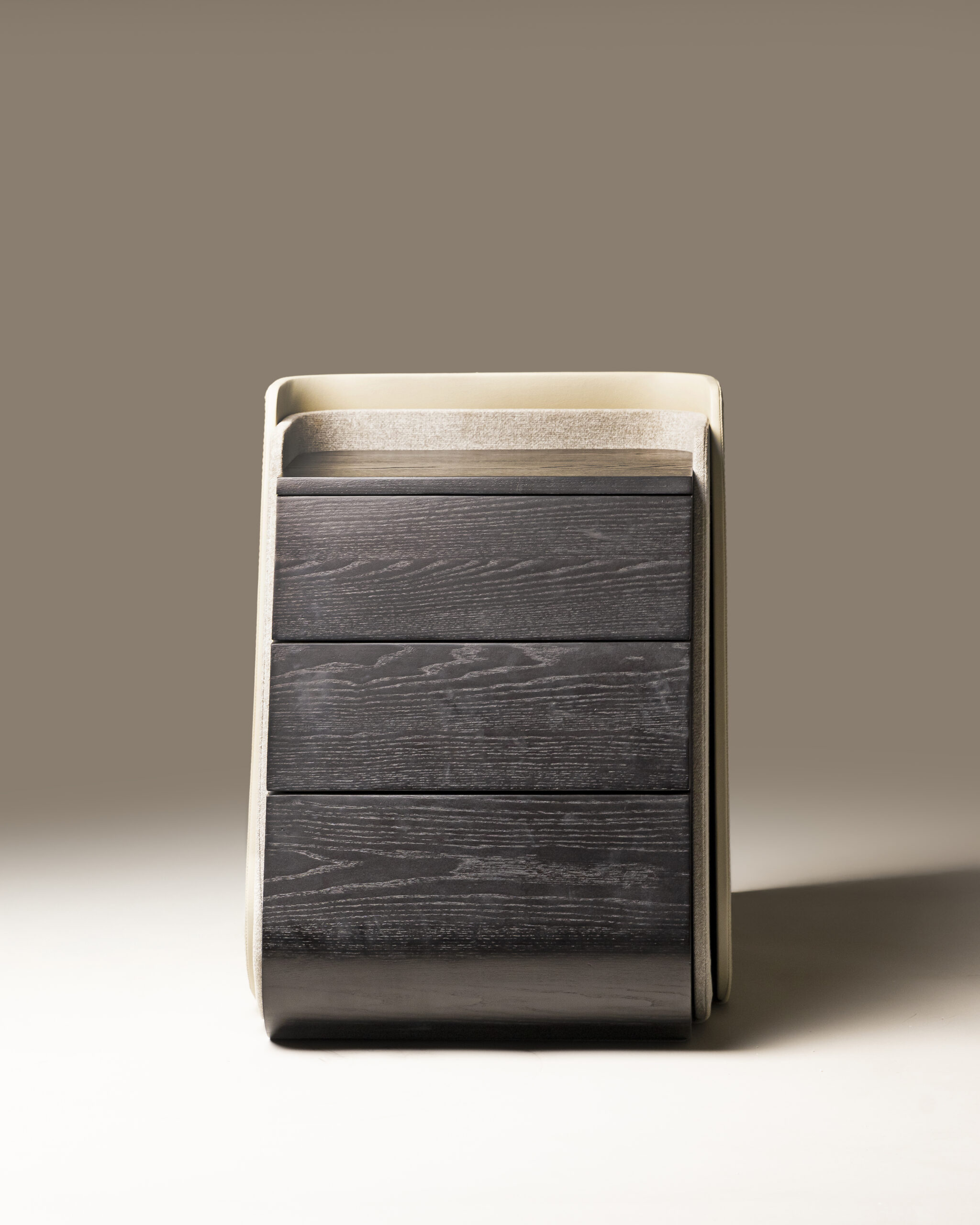 Perfect for bedsides or living areas, the Sheath Table offers both functionality and presence. Its clean form provides ample space for essentials while maintaining an uncluttered aesthetic. The design feels light and versatile, adaptable to interiors that value sophistication expressed through simplicity.