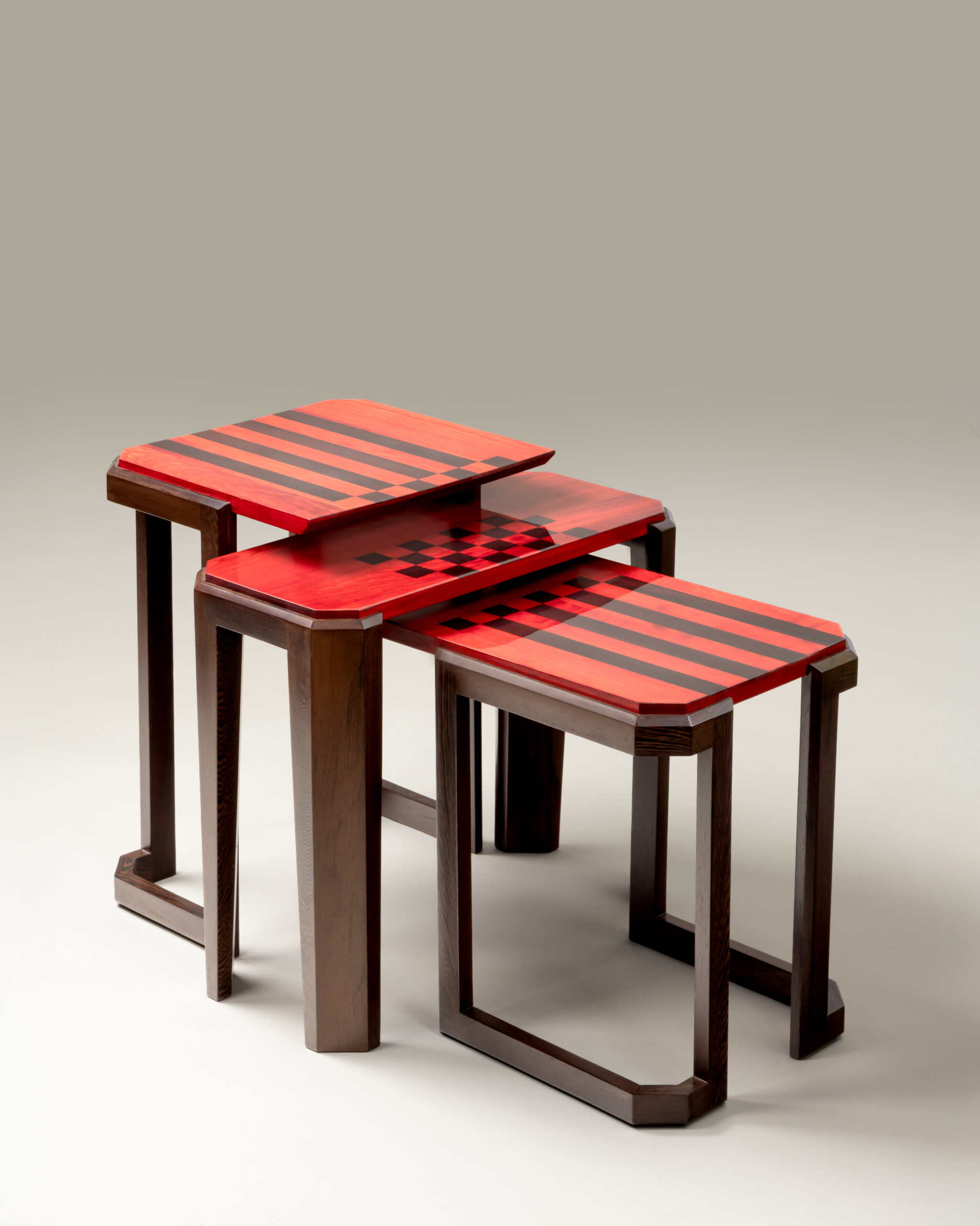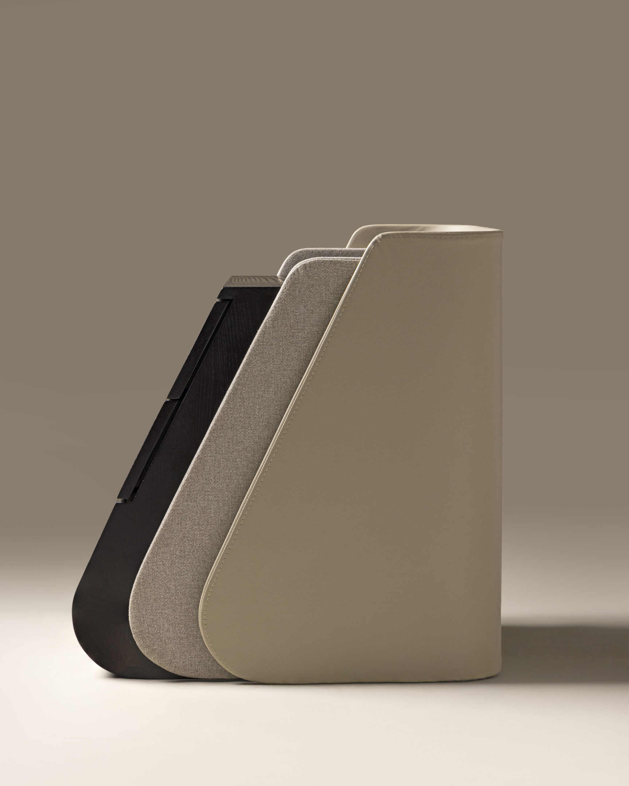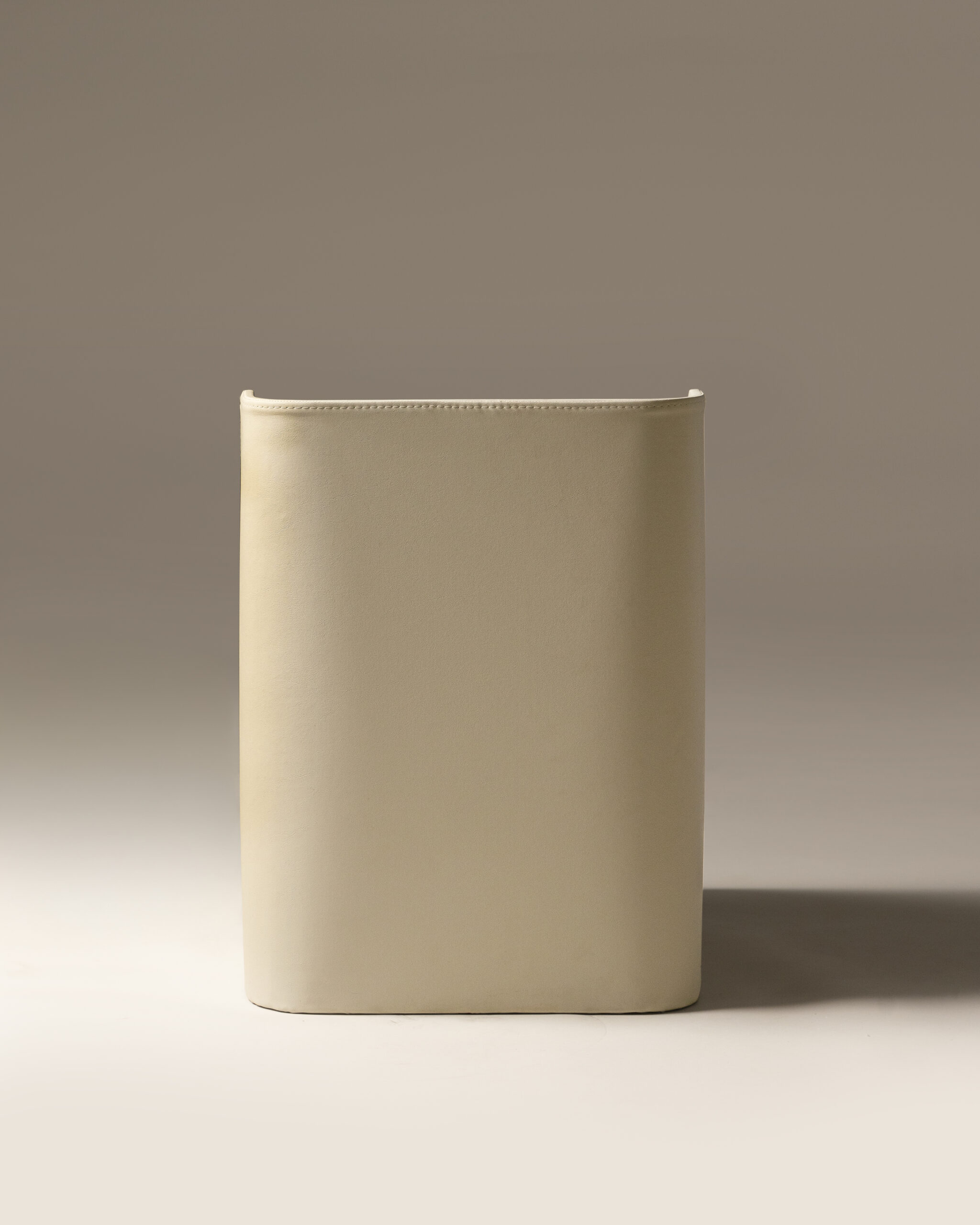 The Sheath Table is a thoughtful fusion of wood, fabric, and leatherette, designed to create a piece that feels both modern and tactile. Its construction celebrates the balance between hard and soft — the solidity of wood softened by textile sheaths that wrap around its sides and back, adding depth, warmth, and subtle character.