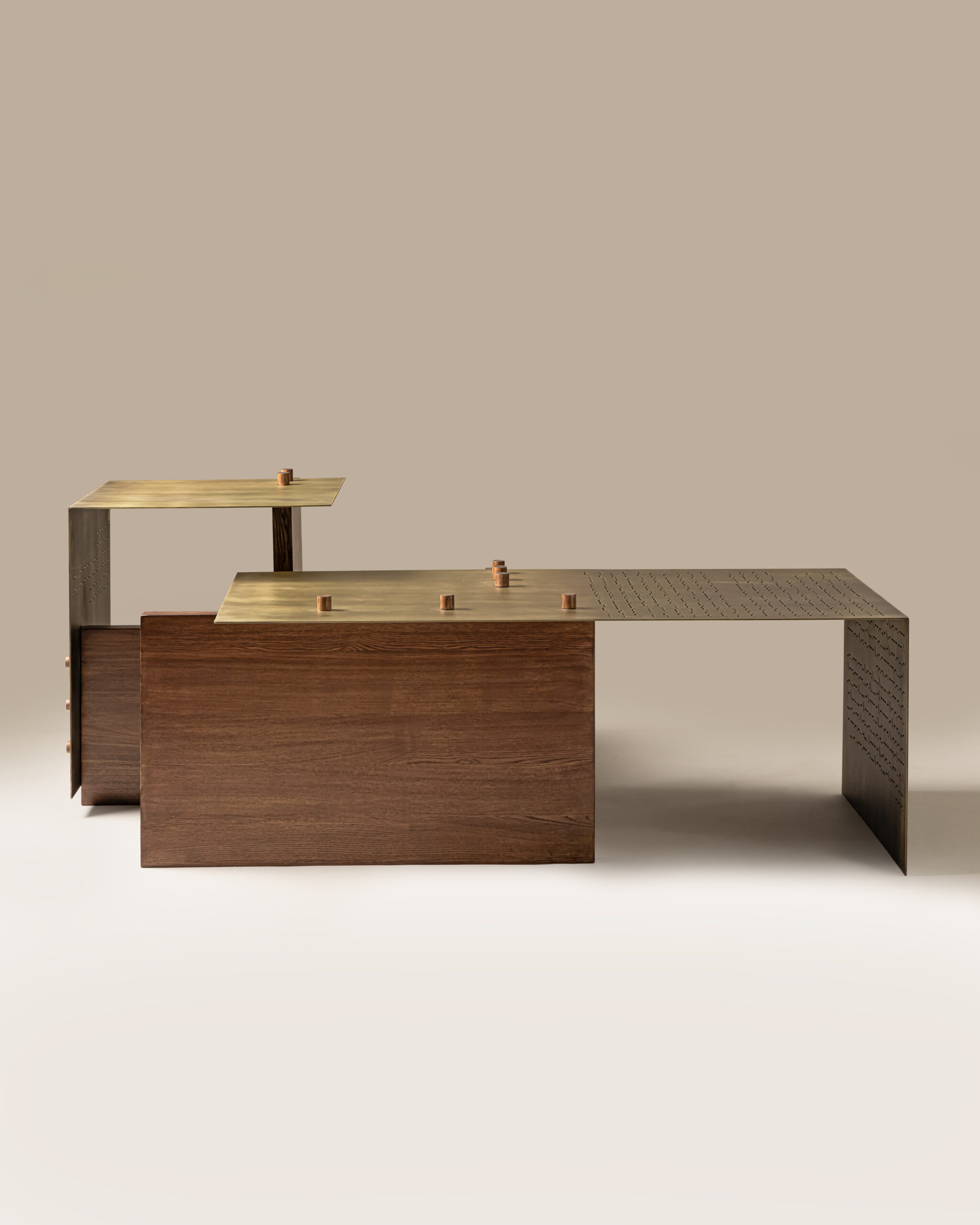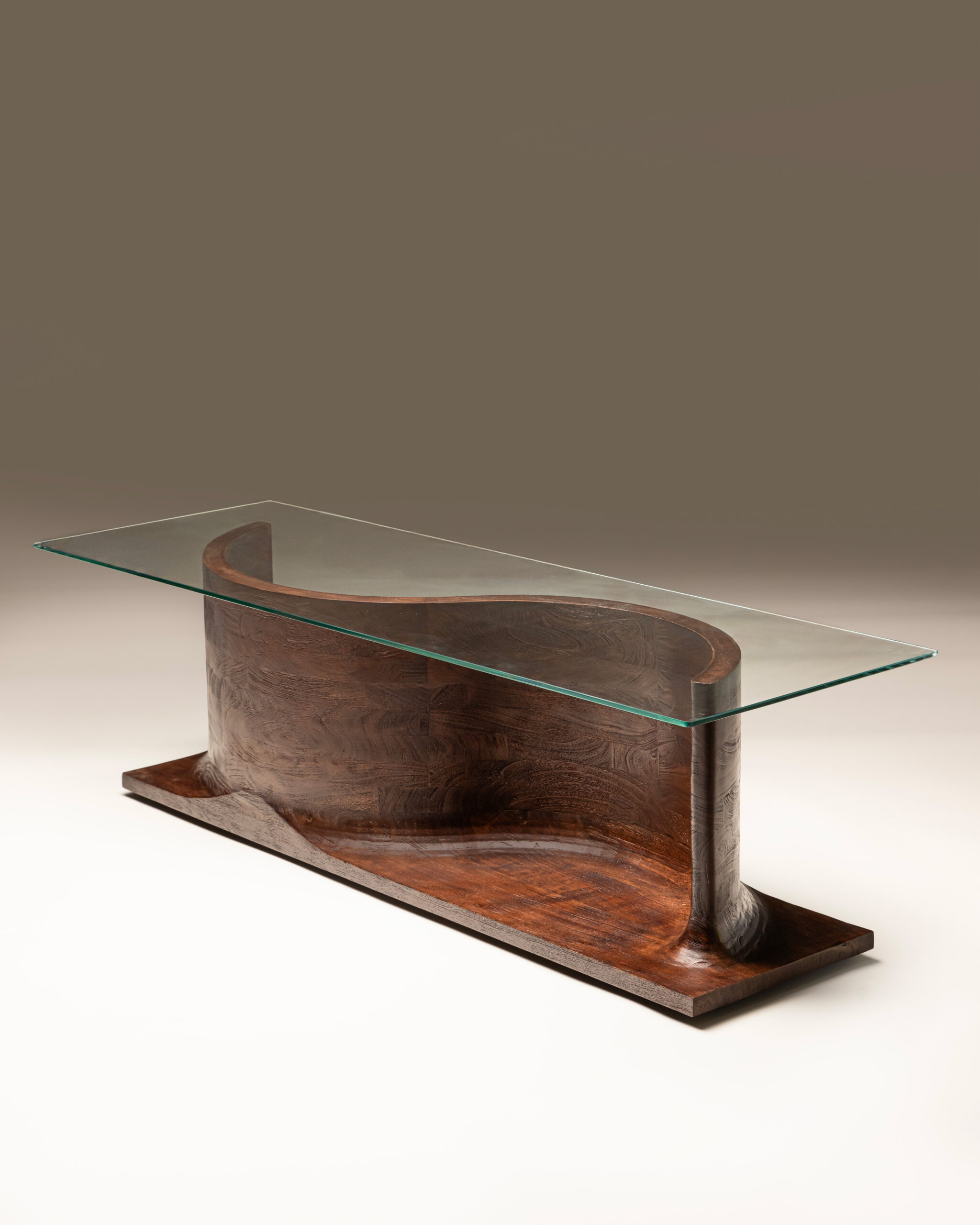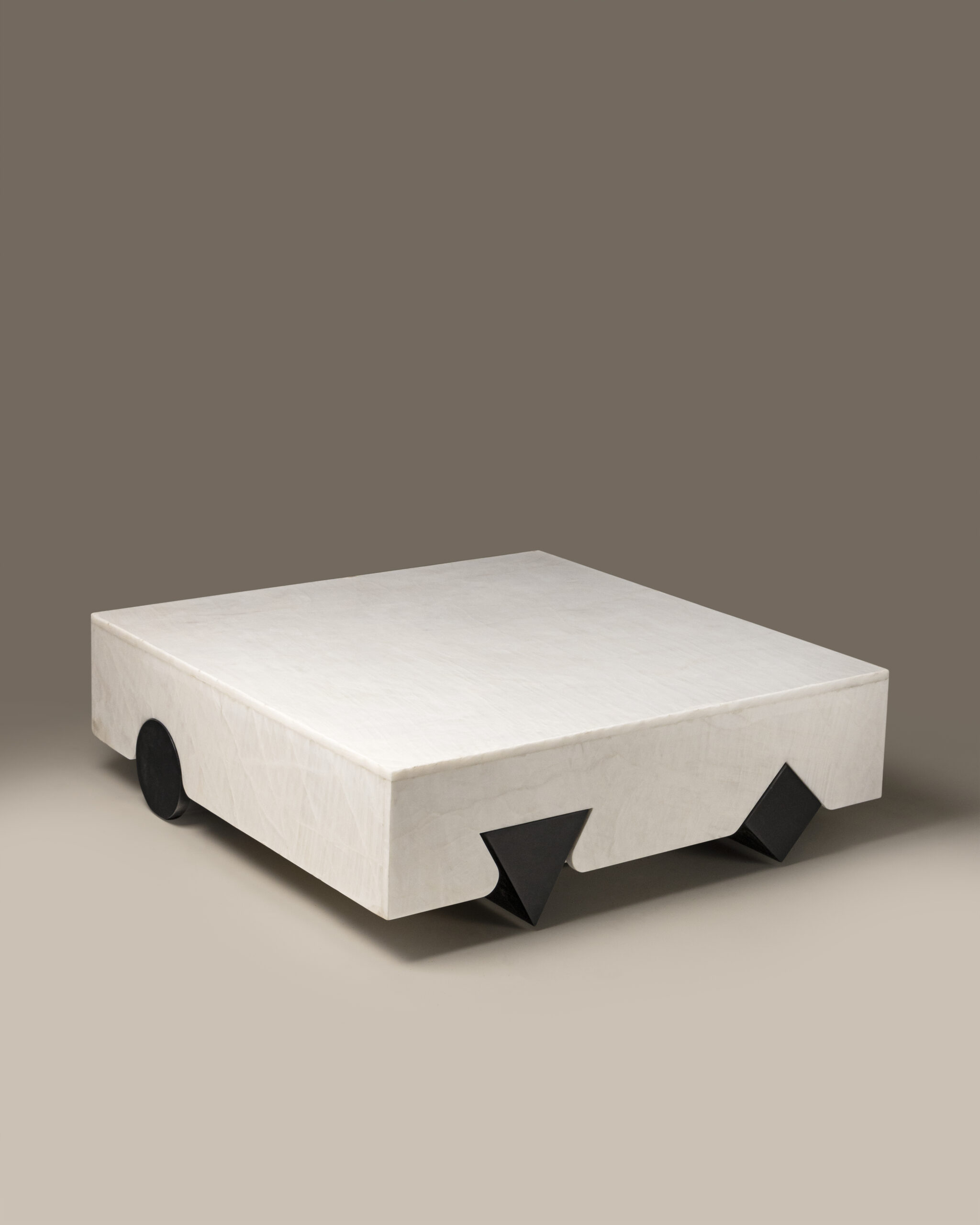 Crafted with architectural precision, the table’s dynamic framework of angular volumes and overlapping surfaces creates a sense of movement — as if the piece were shifting subtly depending on the viewer’s gaze. Every line carries tension and purpose, forming an intricate dialogue between shadow, light, and structure.