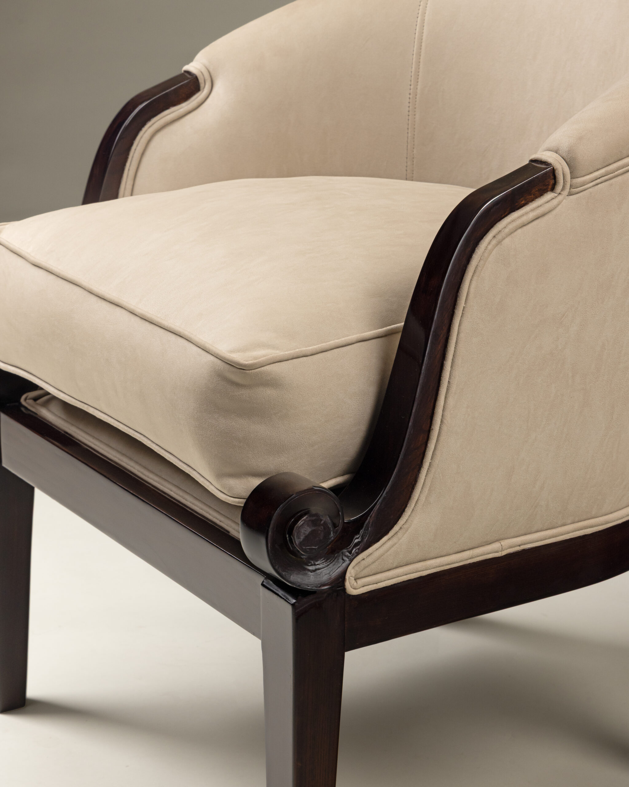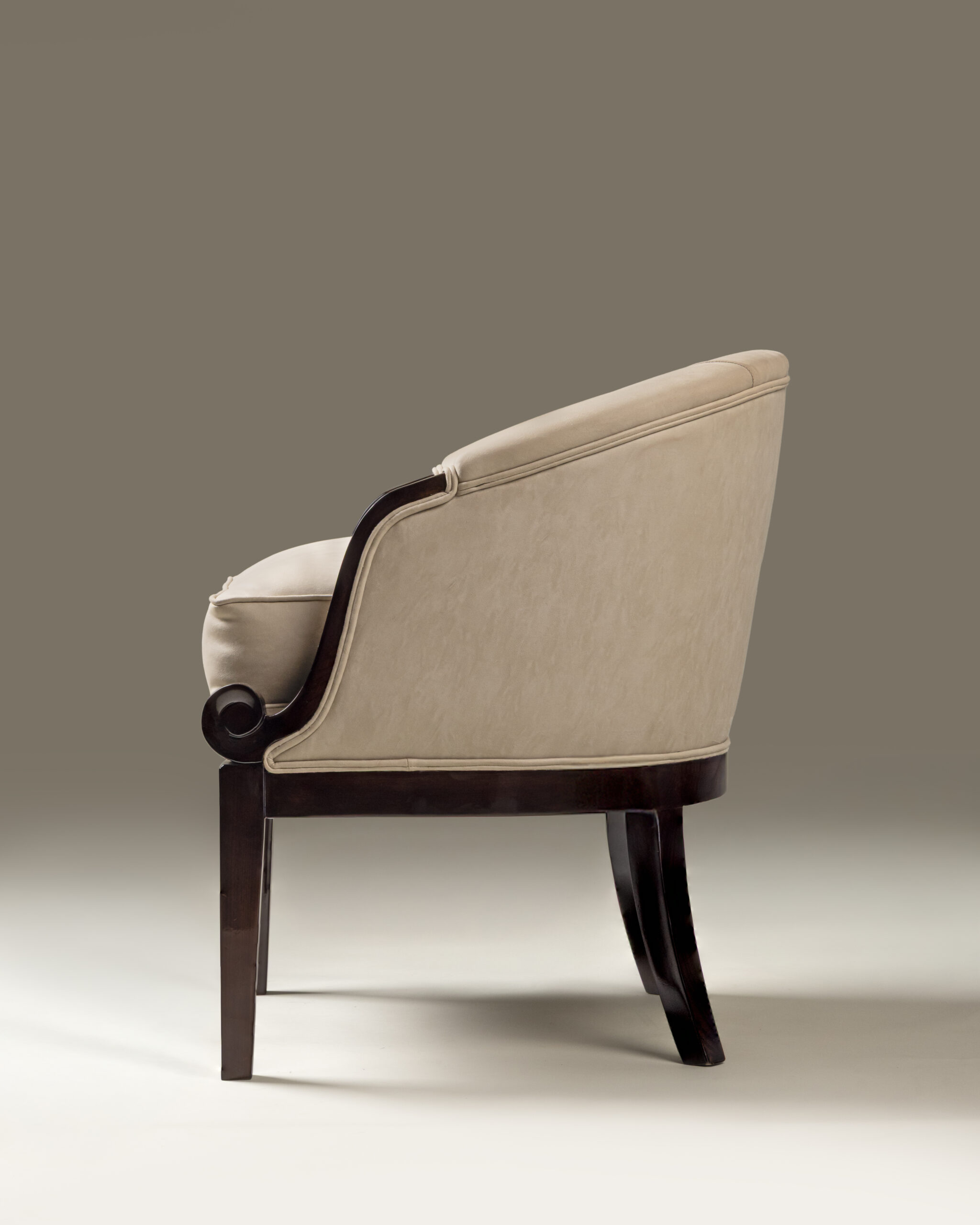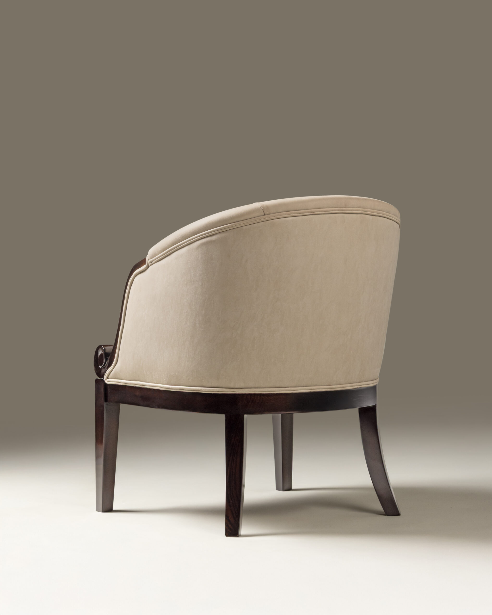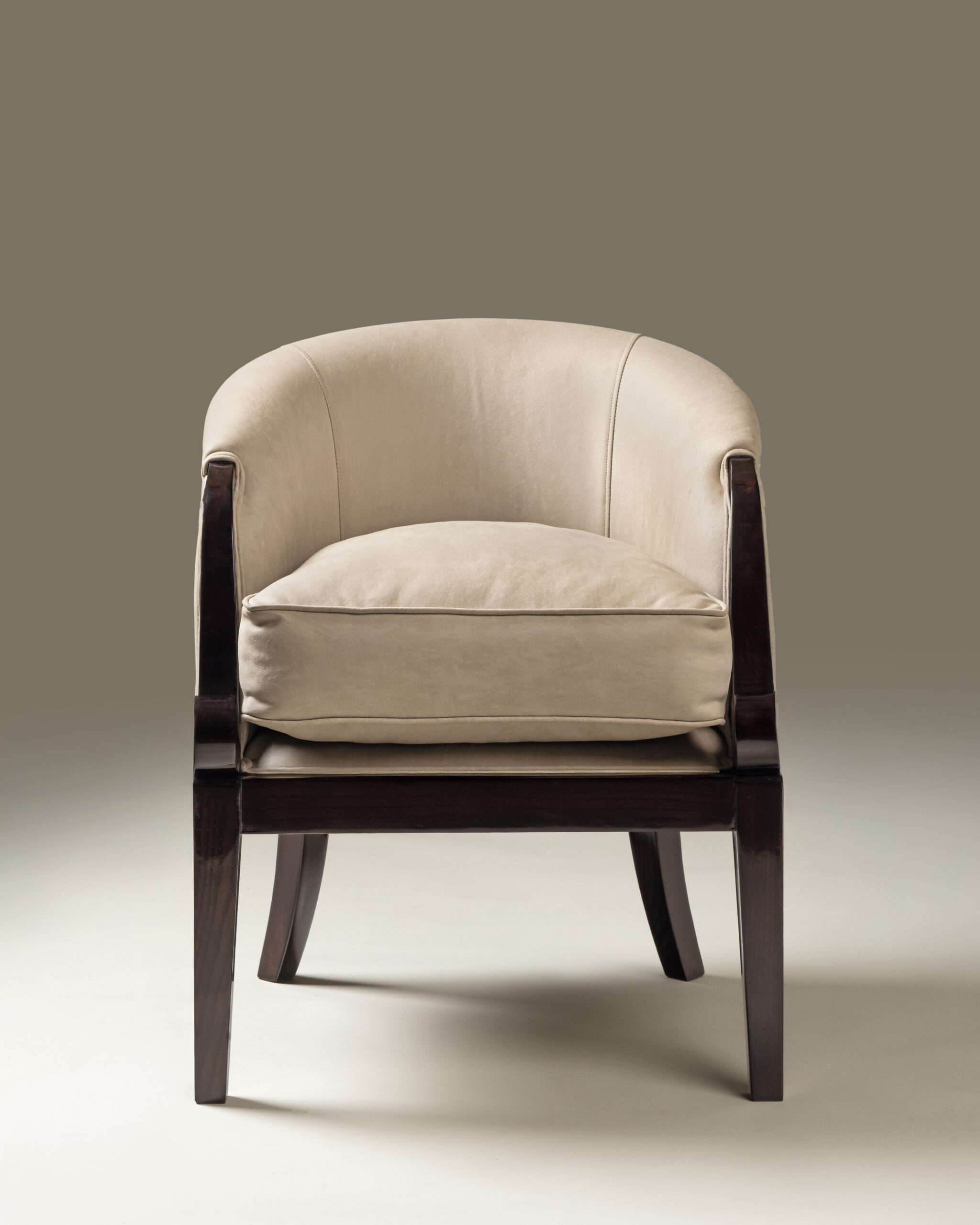 Every detail — from the gentle incline of the backrest to the refined joinery and tailored seams — has been composed with intention. The result is an armchair that balances form and feeling, designed not just for sitting, but for pausing — for the kind of calm that defines true luxury.