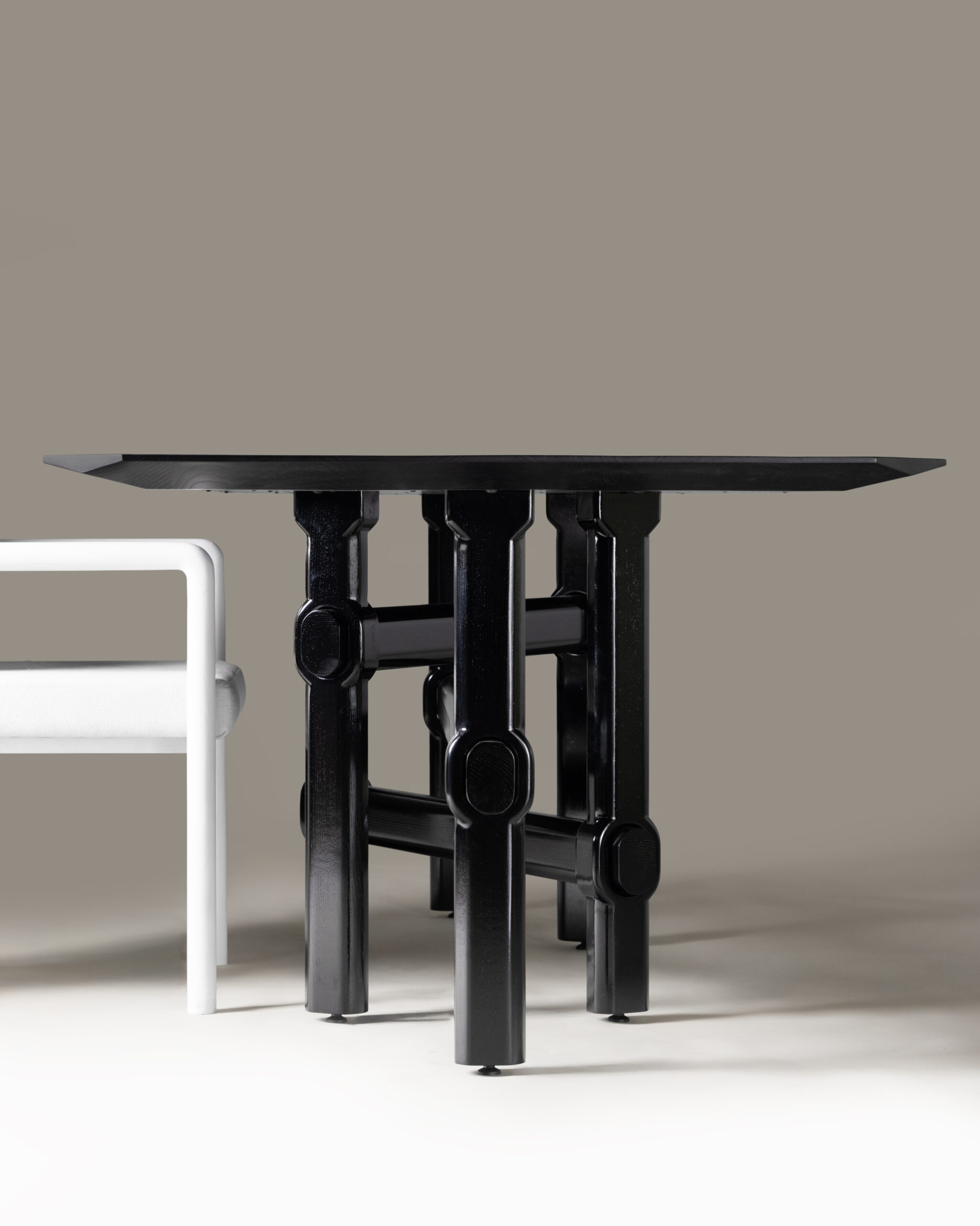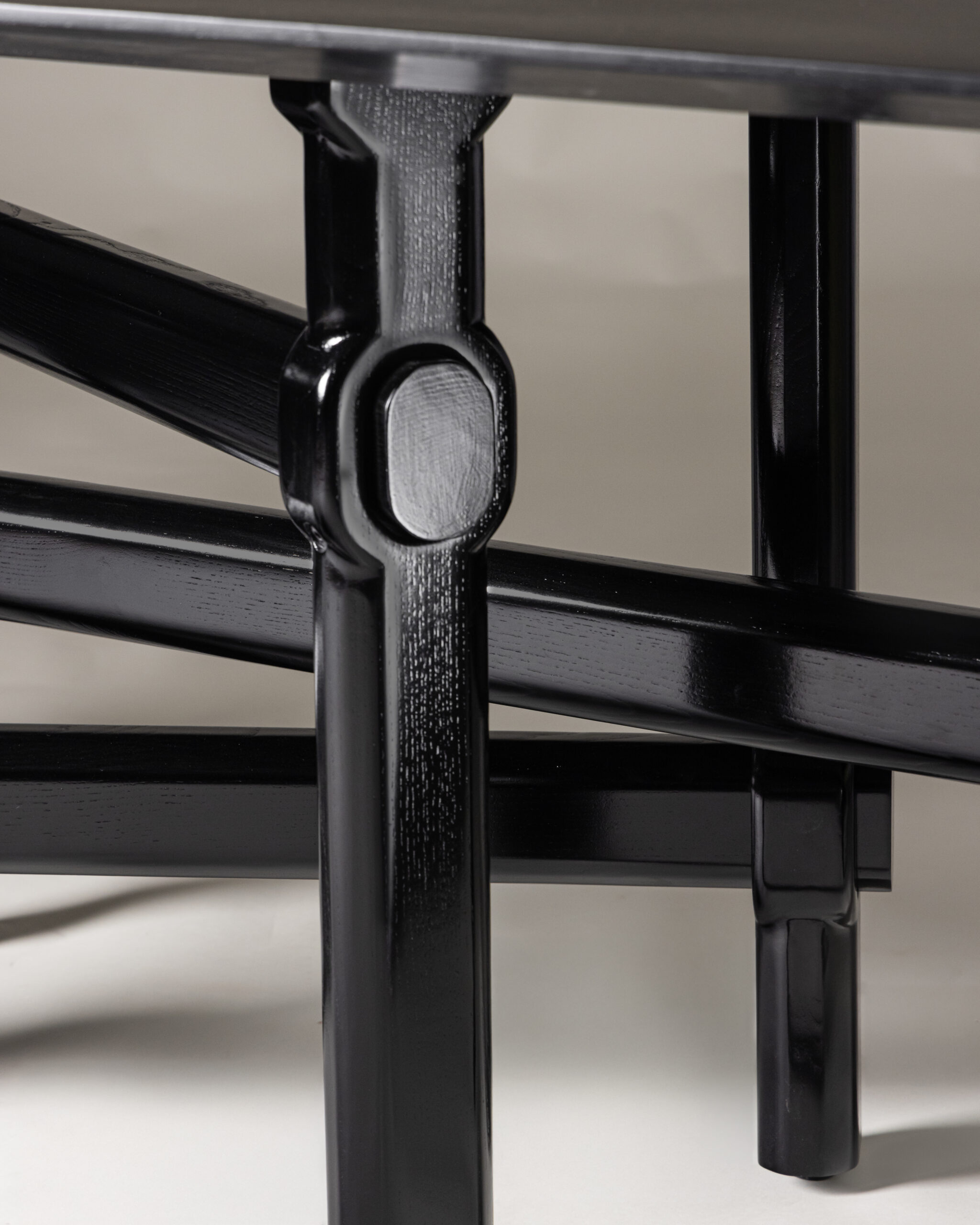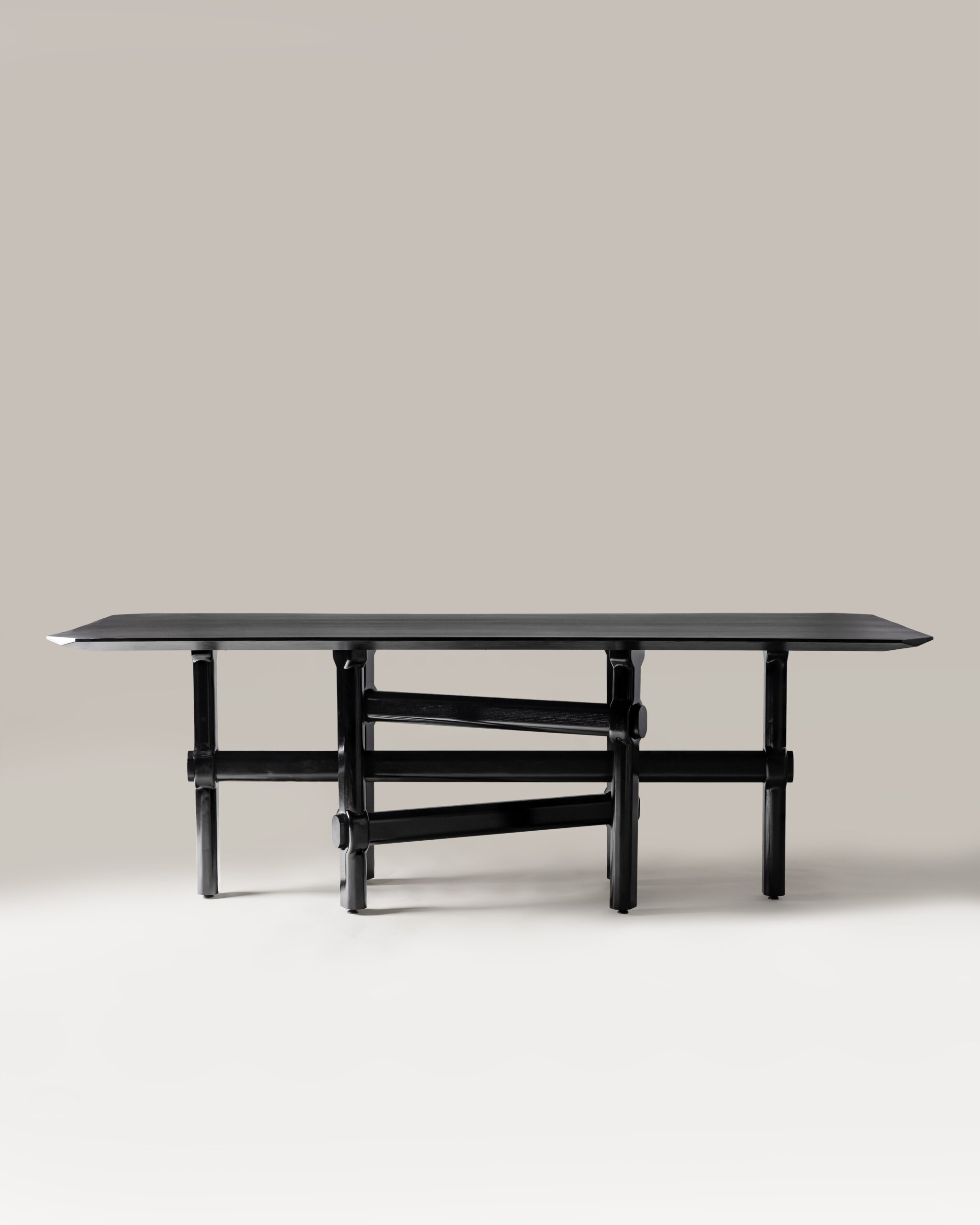 Every element of the table is a study in balance — the precision of joinery, the grace of proportion, and the refinement of material. The deliberate interlocking system transforms the base into a sculptural framework, creating depth and rhythm beneath the sleek tabletop. The finish, carefully applied and polished by skilled artisans, highlights the wood’s natural grain while offering scratch- and stain-resistant durability for everyday elegance.