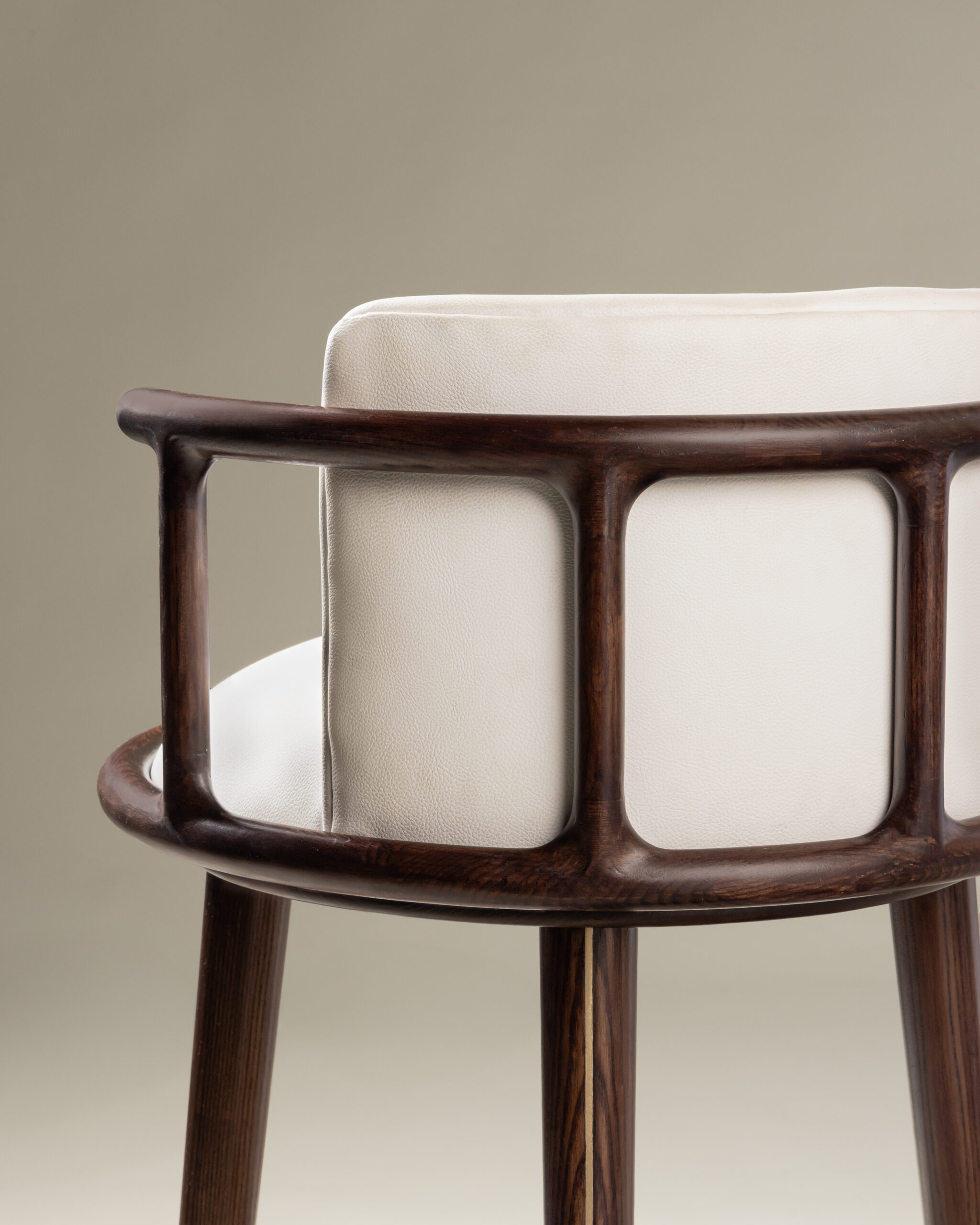 The Vesper Revolving Bar Chair by Home of Chirmi reimagines bar seating through the lens of sculptural design and tactile comfort. Defined by its clean geometry and refined craftsmanship, the chair captures a sense of effortless sophistication, offering movement and balance in perfect harmony. Its design language is quiet yet confident — every curve, edge, and joinery expressing Chirmi’s devotion to proportion and precision.