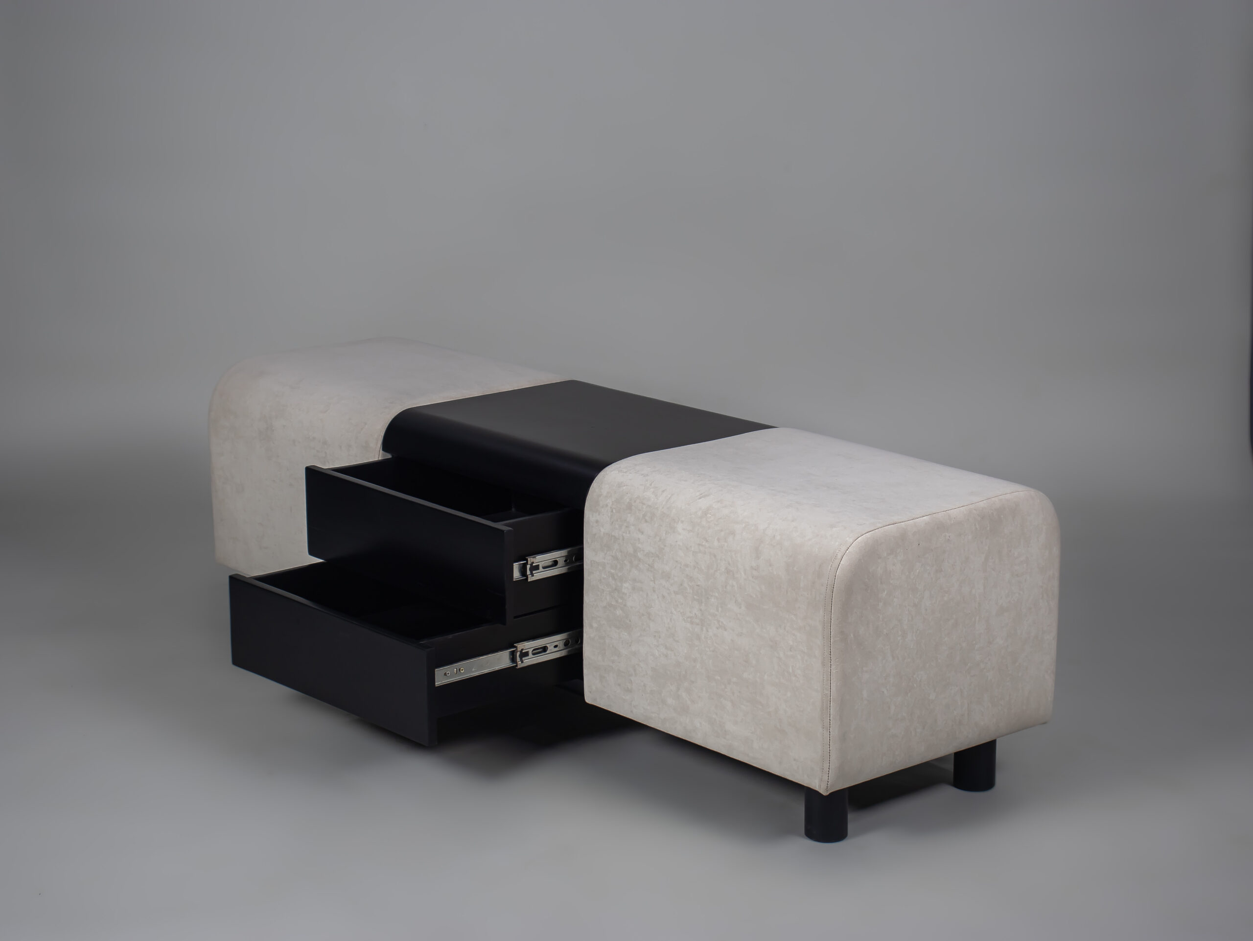 The Zephyr Ottoman is a versatile storage and seating solution, designed to accommodate two people comfortably. Featuring a sleek, modern design, it includes two spacious drawers for discreet storage, making it both functional and stylish. Its sturdy construction and refined upholstery ensure durability while maintaining a minimal aesthetic. Perfect for living spaces, bedrooms, or entryways, the Zephyr Ottoman seamlessly blends practicality with understated elegance.